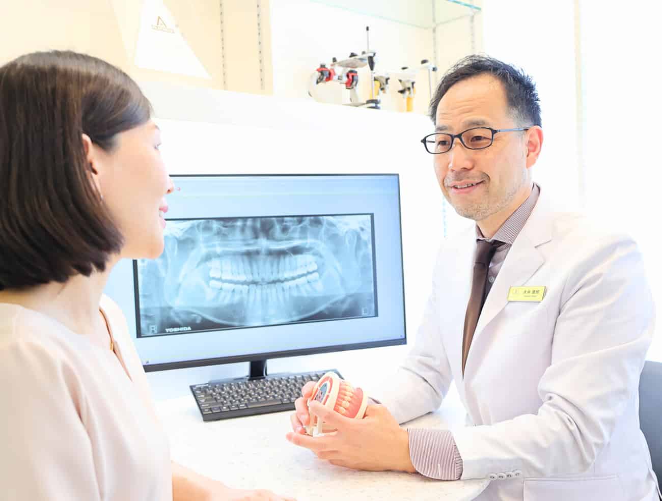 初診から治療計画、インプラント埋入、最終補綴まで、日本口腔インプラント学会専門医・ICOI指導医が一貫して監修します。歯の欠損やボロボロの状態など、複雑な処置が必要なケースに対しても、一人の医師が経過を継続して確認する体制です。
