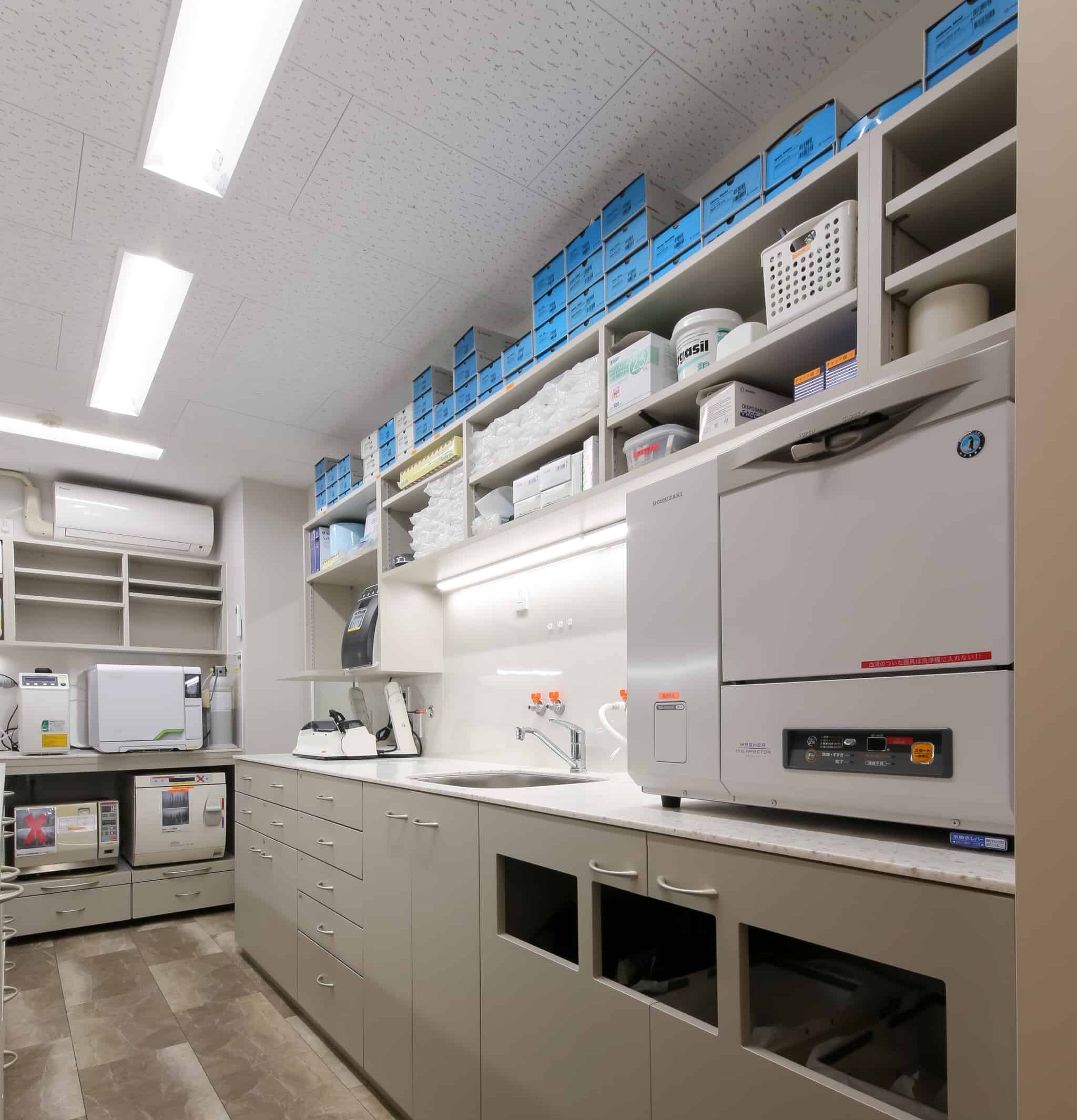 インプラント治療に使用する材料や設備、衛生管理も重要な要素の一つです。当院では、インプラント体について、ノーベルバイオケアやバイコンなど、世界的に使用実績のあるメーカーの製品を、症例ごとに選定しています。最終補綴物には、ジルコニア系材料を使用するなど、耐久性や清掃性を考慮した素材選択を行っています(※症例による)。また、オペ専用室やクリーンエアシステムを備え、クラスB滅菌器やガス滅菌器を用いた感染対策を行っています。インプラントの在庫管理も行い、手術中の状況変化にも対応できる体制を整えています。