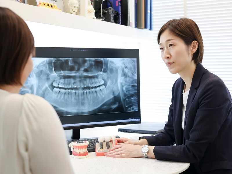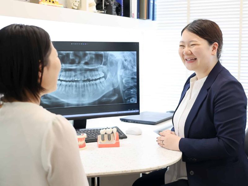 初診カウンセリング初診では、カウンセリングを中心に行います。現在のお悩みやご要望、歯に対する不満や不安な点などについて、時間をかけてお話を伺います。あわせて、レントゲン撮影や口腔内写真の撮影を行い、お口の状態を把握します。「こんなことを聞いてもいいのかな」と思われるような小さなことでも構いませんので、気になる点がありましたら遠慮なくお聞かせください。